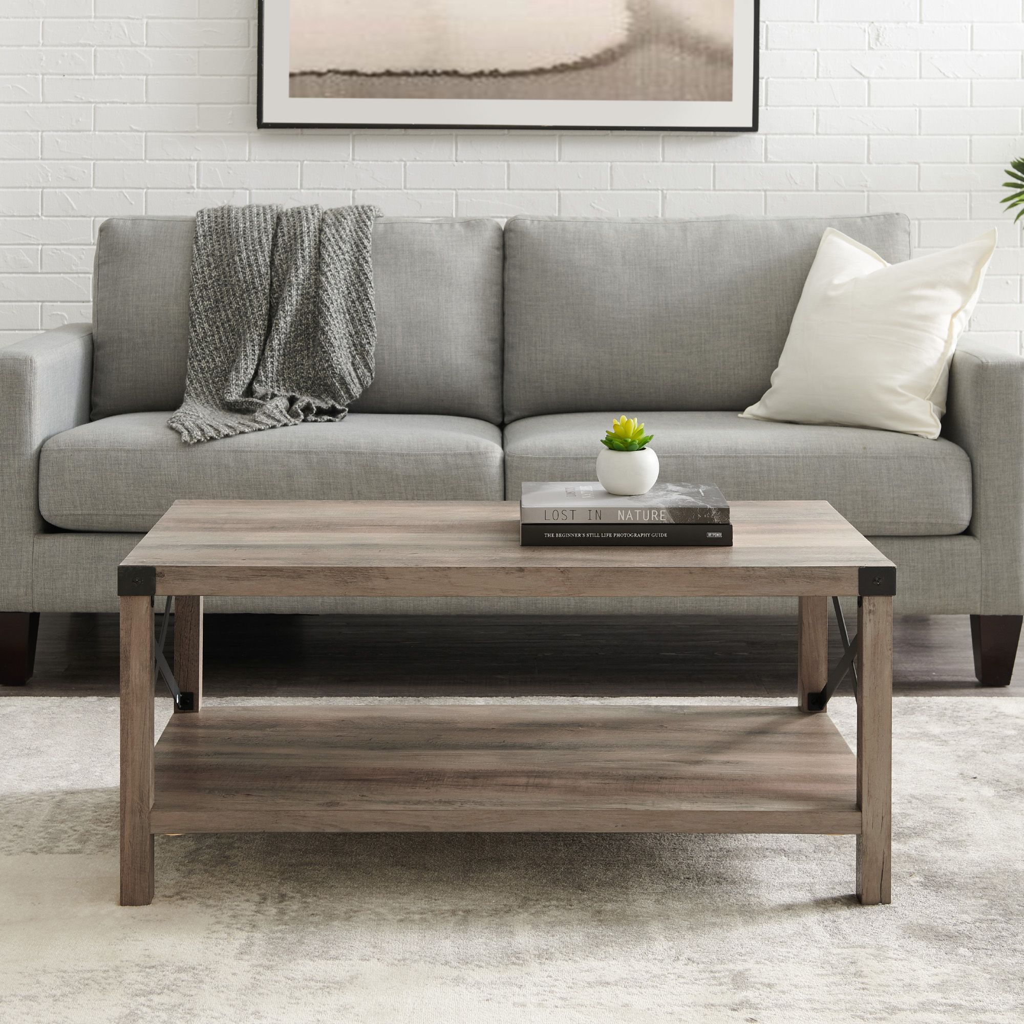 Farmhouse Coffee Table Grey Wash : Amazon Com Furnichoi Farmhouse Coffee Table Wood Rustic Vintage Cocktail Table For Living Room With Shelf 47 White And Brown Kitchen Dining : The stain i'm using is varathane carbon grey.. For the white wash it's just a 1 part white paint to 3/4 part water. All you need is a drill and a saw. Acorn tapered leg coffee table. Shop farmhouse coffee tables in a variety of styles and designs to choose from for every budget. Shop wayfair for all the best modern farmhouse coffee tables.